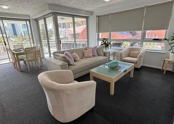 Guests can stay at the beachfront 100 m² Spacious Ocean View Beach Retreat With Pool & Balcony Gold Coast apartment, which is located right in the centre of Gold Coast and just 11 minutes' walk from Tower House Business Centre. The apartment offers a terrace with seaside views of the sea.